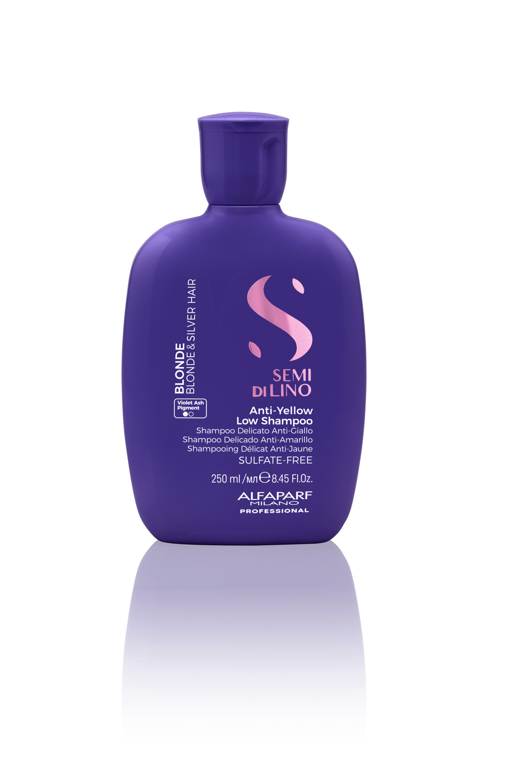 Anti-Yellow Shampoo šampūnas šviesiems plaukams, iš Semi Di Lino linijos. Šis plaukų šampūnas skirtas šviesiems, žiliems, tiek natūraliems, tiek dažytiems plaukams. Jis neutralizuoja nepageidaujamus geltonus tonus, atgaivina plauko pluoštą, drėkina ir suteikia plaukams švelnumo ir žvilgesio. Blonde Recovery veiklioji medžiaga pagaminta iš saldžiosios ceratonijos sėklų ekstrakto, kuris suteikia plaukams gyvybingumo ir drėkinimo, bei ilgai išliekantį sveikų plaukų pojūtį.