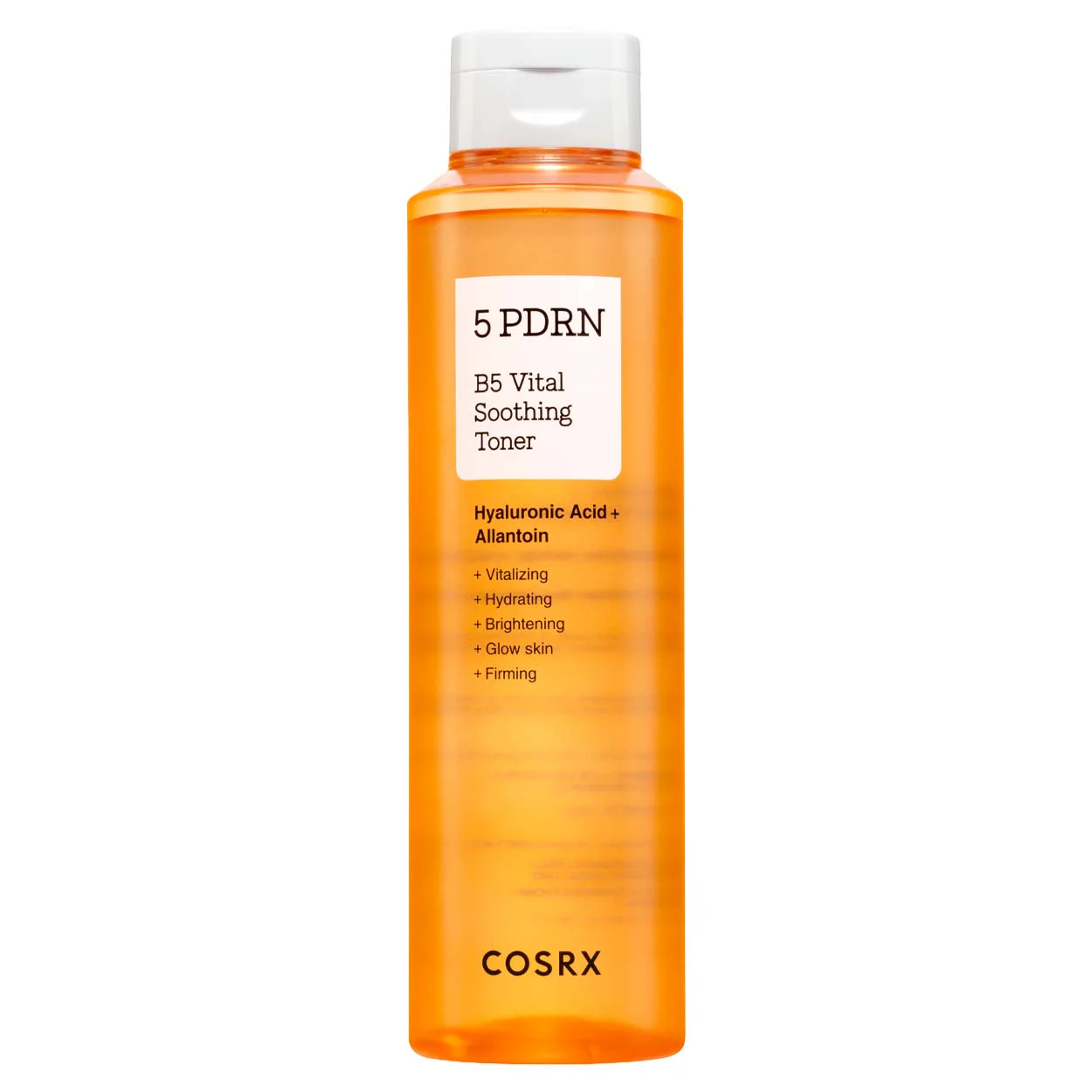 COSRX 5 PDRN B5 Vital Soothing Toner – veido tonikas, suteikiantis raminantį, drėkinantį ir šviesinantį poveikį. Priemonės sudėtis yra praturtinta PDRN, hidrolizuotu kolagenu, niacinamidu ir pantenoliu. Šios veikliosios medžiagos pagerina odos drėgmės lygį, stangrina ir pagreitina odos regeneracijos procesus. Šis tonikas yra lengvos, vandeningos konsistencijos, greitai įsigeria.