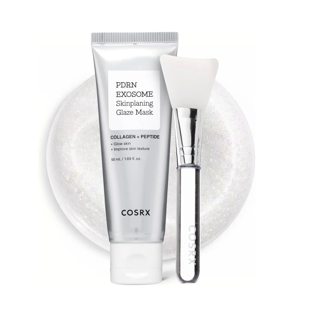 COSRX PDRN EXOSOME Skinplaning Glaze Mask – tepama veido kaukė, praturtinta lašišos PDRN ir egzosomomis (iš azijinės centelės bei laktobacilų). Sudėtyje taip pat yra PHA, kuri švelniai eksfoliuoja odą, kolagenas, stiprinantis odos barjerą ir niacinamidas, suteikiantis sveiką spindesį. Ši kaukė stiprina odos stangrumą, intensyviai drėkina ir gerina odos tekstūrą. Užtepta kaukė džiūnant sukuria plėvelę, kurią vėliau yra labai patogu pašalinti, tereikia švelniai nulupti. Pakuotėje yra pridėtas silikoninis šepetėlis, kuris palengvina kaukės aplikavimą.
