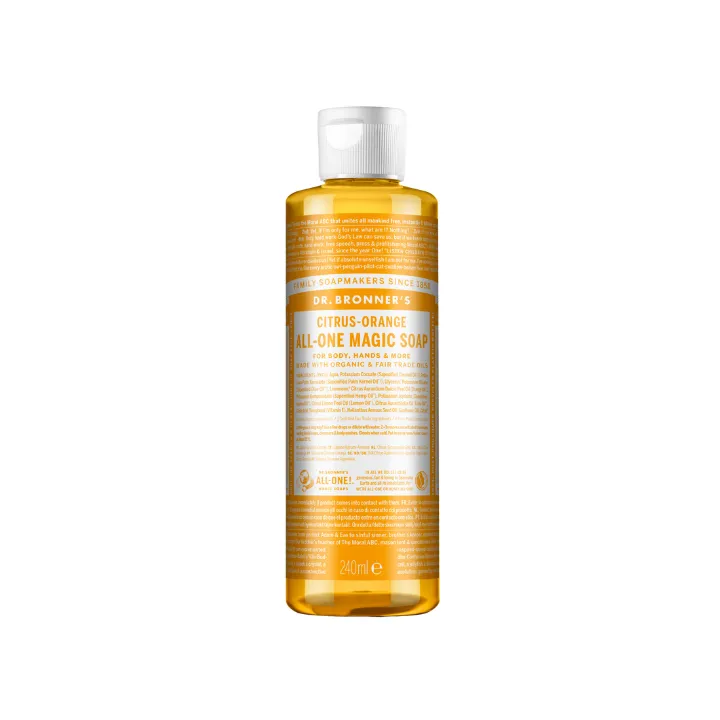 „Dr. Bronner’s“ ekologiškas Kastilijos skystas muilas su citrusais. Gaivus ir skaidrus derinys iš ekologiškų apelsinų, citrinų ir laimų. Koncentruotas, veiksmingas ir labai universalus. Vienas produktas – 18 panaudojimo būdų! Originalu!