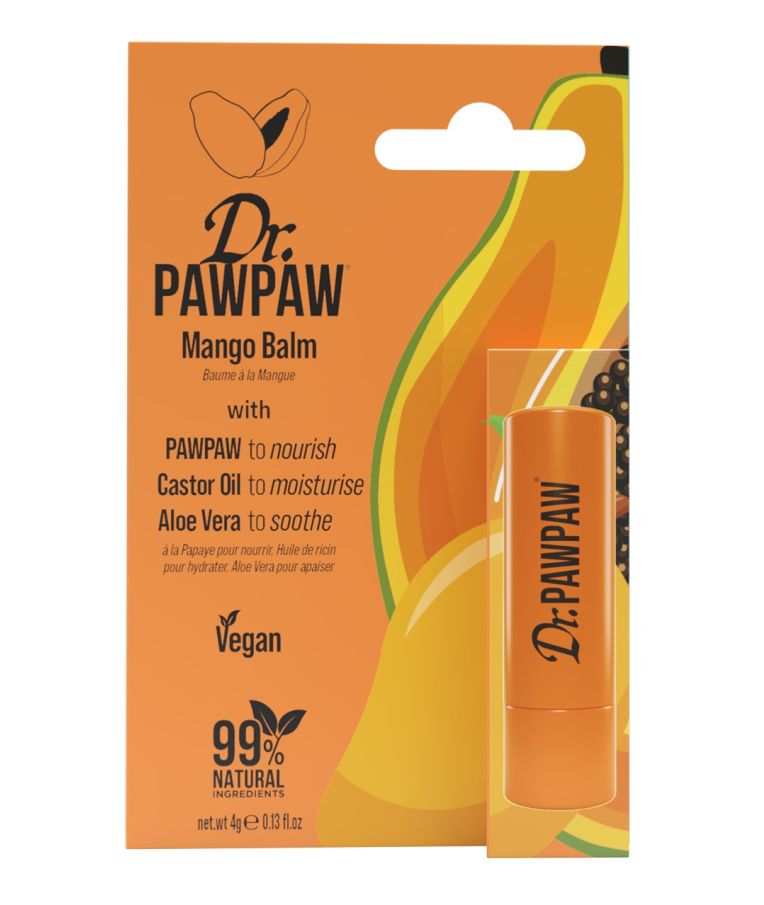 Dr. PAWPAW Mango lūpų pieštukas yra papildytas papajos ekstraktu – lūpų maitinimui, alaviju – lūpų raminimui, alyvuogių ir ricinos aliejais – lūpų drėkinimui. Su vos juntamu mango vaisiaus aromatu nepakartojamai tropinei patirčiai.